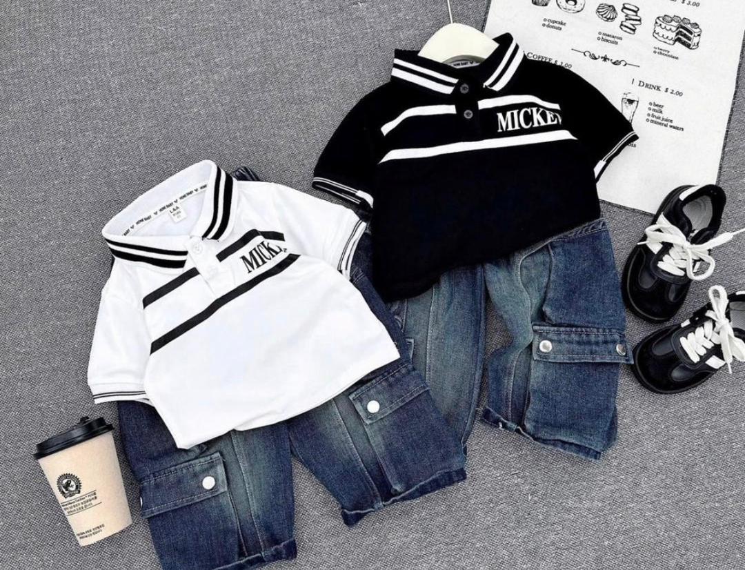 Boys’ 2-Piece Polo and Denim Cargo Set. It’s a classic athletic-preppy look that is very popular for toddler and youth summer fashion.